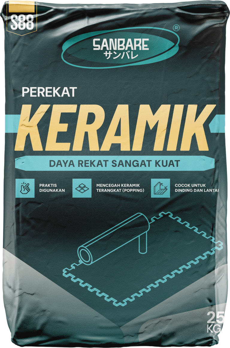 Sanbare S88 Perekat Keramik adalah semen instan siap pakai untuk pemasangan keramik (porous tile) yang dipasang pada lantai maupun dinding, terdiri dari campuran semen, filler, additive dan pasir pilihan yang tercampur secara homogen, memberikan kekuatan daya rekat yang konsisten untuk mencegah keramik tidak mengangkat atau lepas.